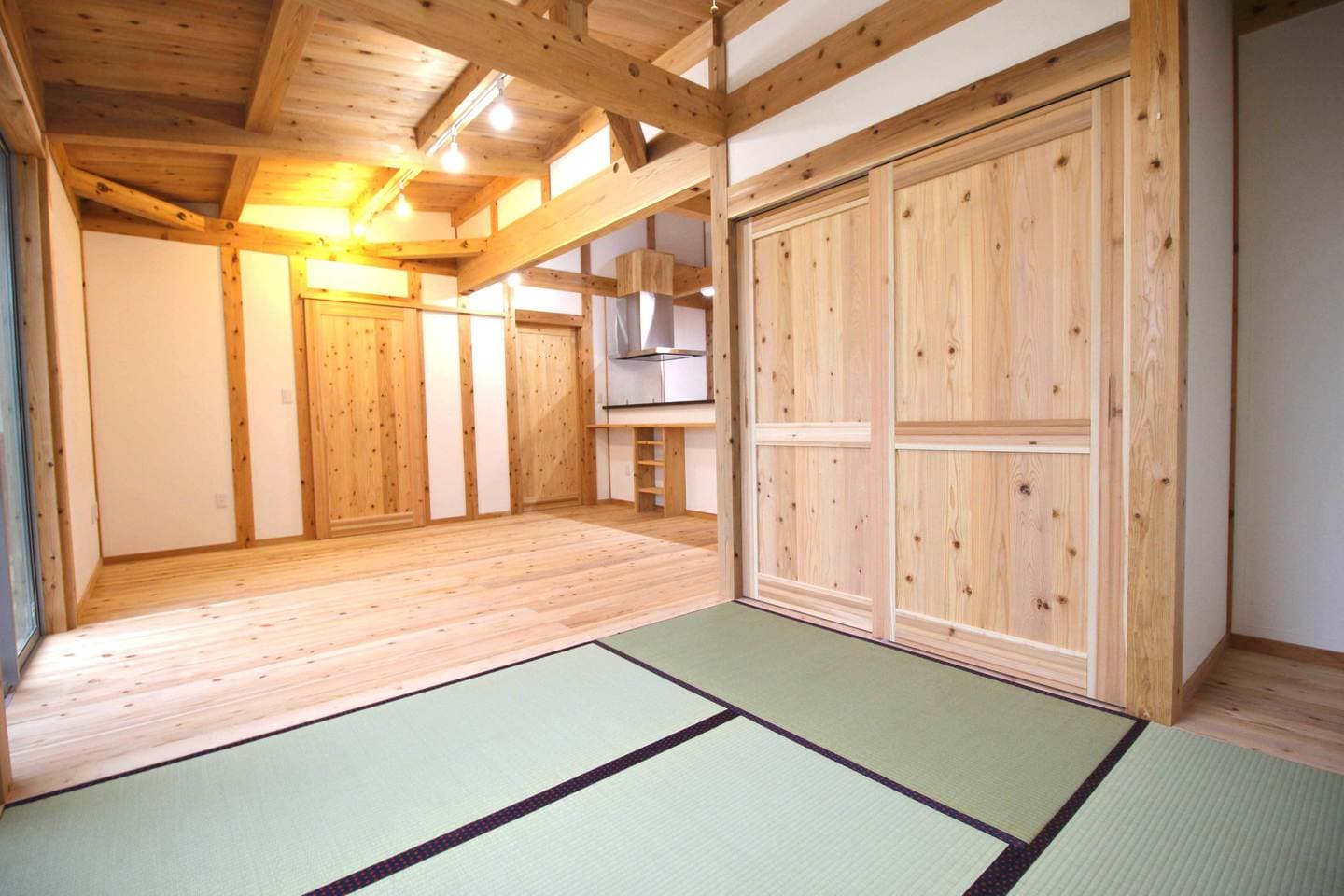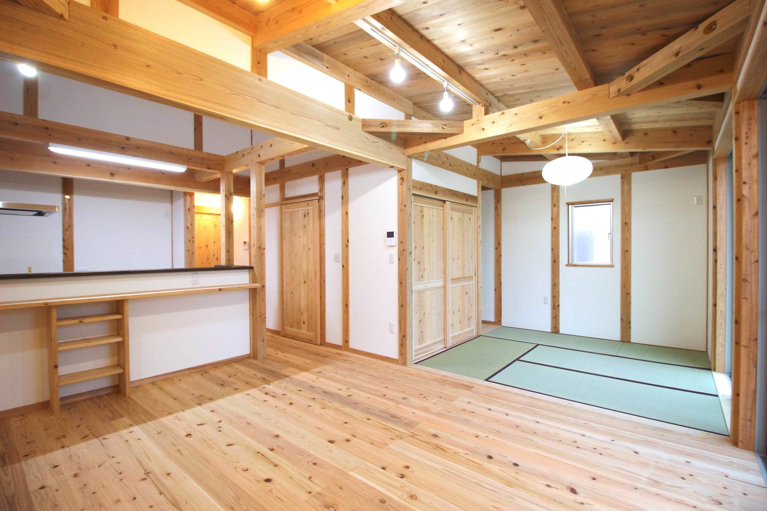 新築施工事例 Case20 前のページへ 新築一覧へ戻る 次のページへ 4人家族/2階建て/30坪 施主のお気に入りポイント 【LDK】 リビングと和室をフラットにして つなげることで、広く奥行きのある LDKにしました。今はロールカーテンで 間仕切れるようにしています。