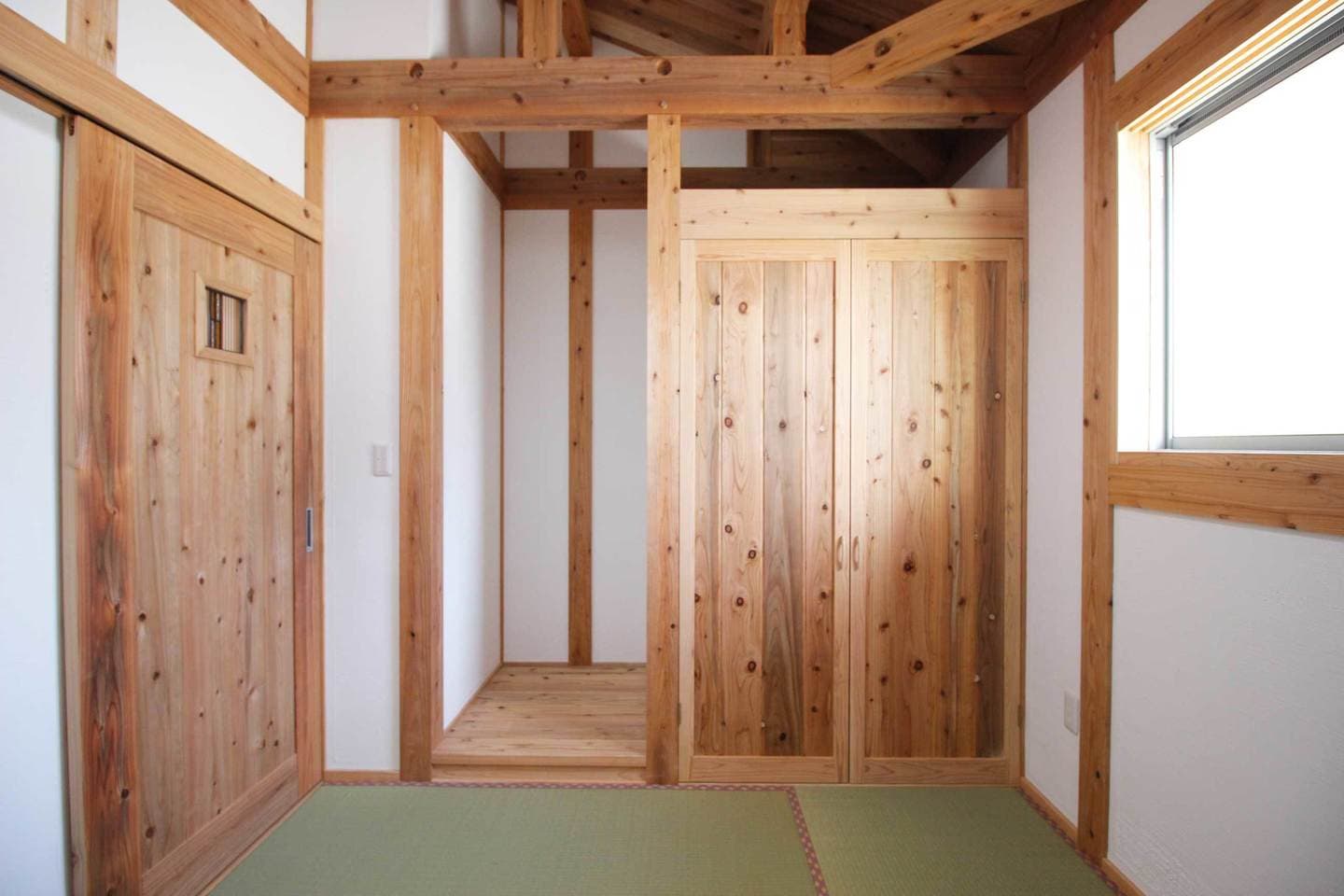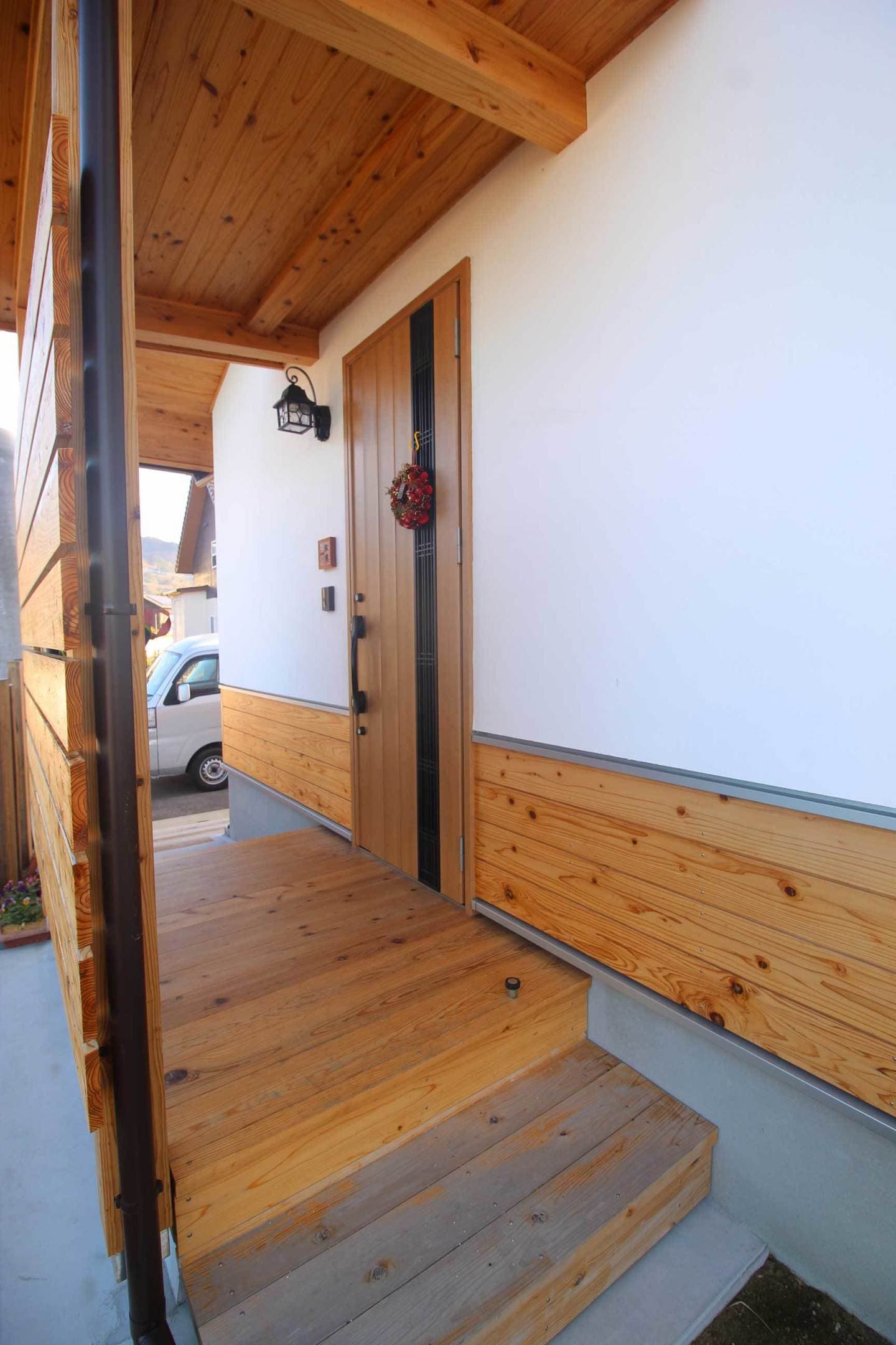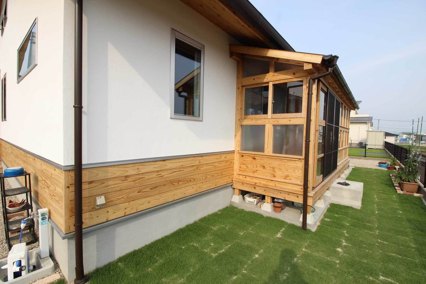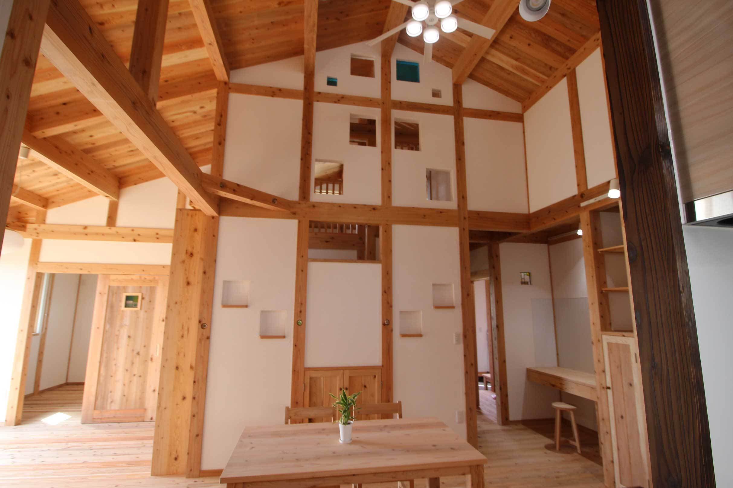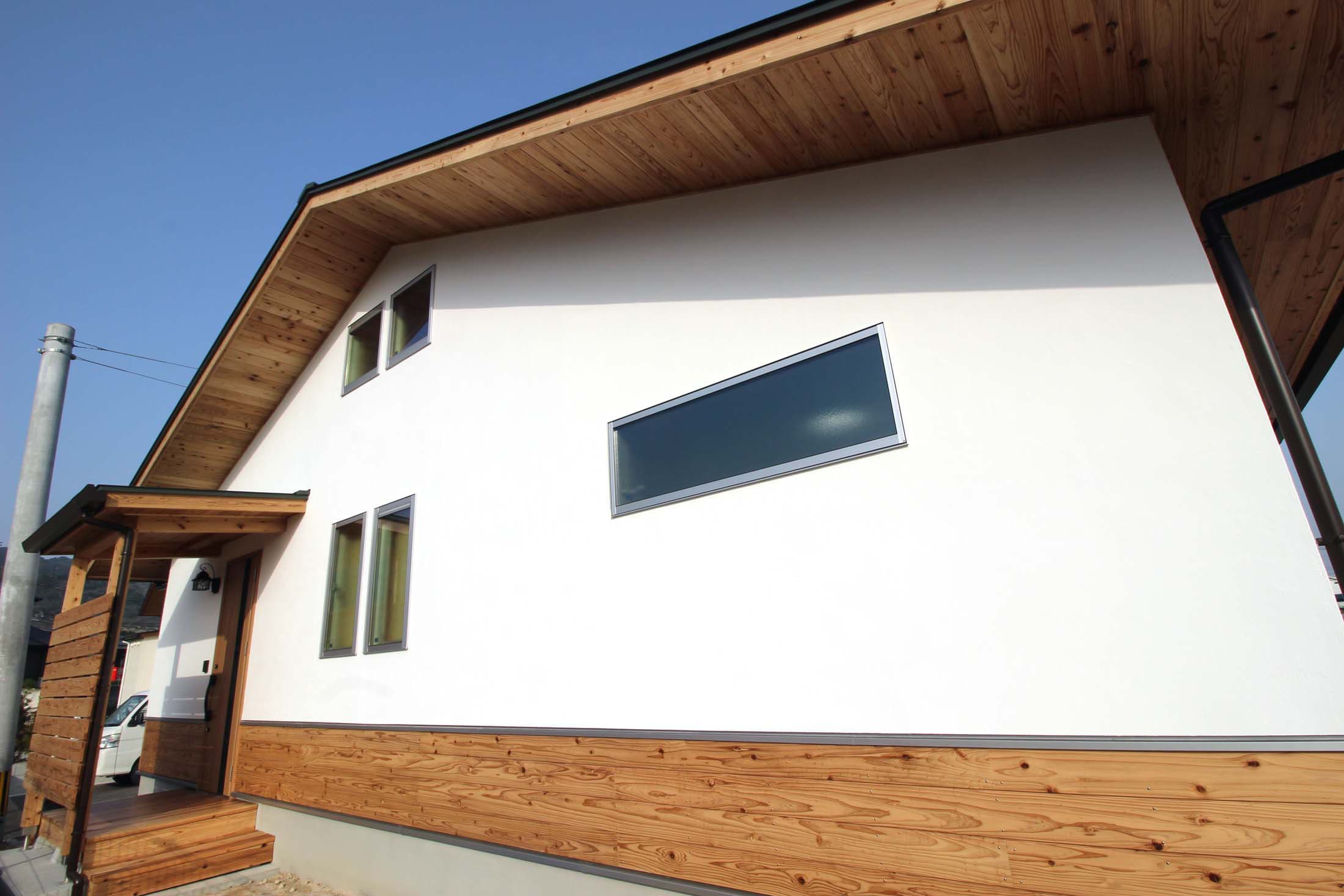 新築施工事例 Case15 前のページへ 新築一覧へ戻る 次のページへ 構造形式:木造軸組構 造 材 :音響熟成木材主な仕上げ屋 根=ガルバリウム鋼板SGL外 壁=幻の漆喰「そとかべ」+音響熟成下見板18mm破風板=音響熟成木材30mm軒天井=音響熟成木材12mm天井=音響熟成木材38mm 壁 =幻の漆喰 床 =音響熟成木材うづくり38mm